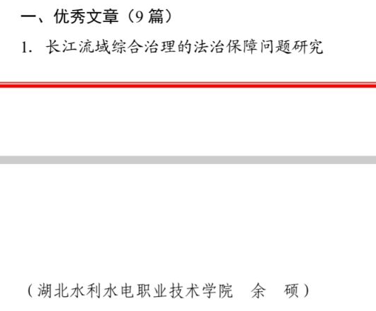 为深入贯彻党的二十大精神和省第十二次党代会精神,贯彻落实省委、省政府印发的《湖北省流域综合治理和统筹发展规划纲要》,加强水利法治建设,推进水利治理体系和治理能力现代化,为水利事业高质量发展提供有力法治保障,服务湖北以流域综合治理为基础的“四化”同步发展和建设全国构建新发展格局先行区,今年2月至6月,省水利厅在全省水利系统组织开展了“强化流域综合治理的法治保障”征文活动。经对收到的54篇应征文章进行认真评选,评出9篇优秀文章,其中,我院思政课部教师余硕征文《长江流域综合治理的法治保障问题研究》榜上有名。根据各地各单位征文工作组织情况,评出7个优秀组织单位,我院位列其中。