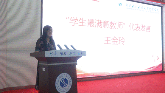 新进教职工代表陈宇轩、2022-2023年度“学生最满意教师”代表王金玲、荣休教职工代表肖志鹰依次发言,分享教育初心和育人理念。