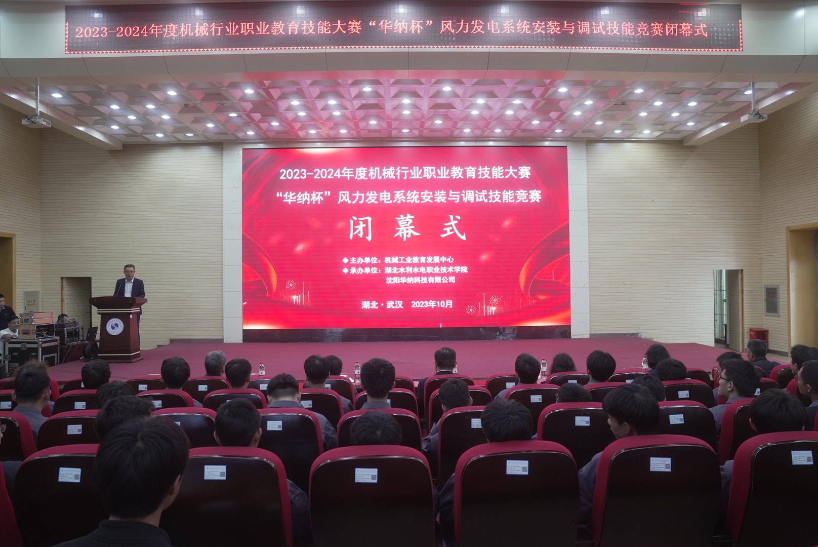10月20日至10月23日,由全国机械工业教育中心主办,湖北水利水电职业技术学院和沈阳华纳科技有限公司共同承办的2023-2024年度机械行业职业教育校技能大赛—“华纳杯”风力发电系统安装与调试技能竞赛在我院成功举办。