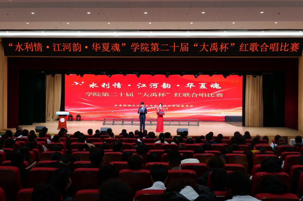 二十年风雨兼程,二十年水韵传情,11月20日下午,“水利情·江河韵·华夏魂”学院第二十届“大禹杯”红歌会在汤逊湖校区大学生活动中心千人报告厅举行。学院党委书记姚祖军,党委副书记、院长张政,党委委员、副院长陈鲁莉以及党办、院办、学工处、保卫处、图书馆、后勤、思政课部、基础课部、工会、各系部相关负责人、全体辅导员和参赛队伍共计900余人参加本次活动。