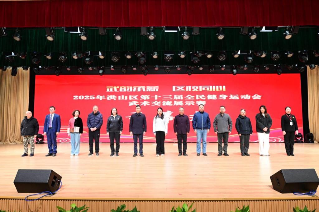 11月23日,由洪山区体育局、洪山区武术协会与我院联合策划举办的“武韵承薪,区校同心”洪山区第十三届全民健身运动会武术交流展示赛在我院汤逊湖校区大学生活动中心顺利落幕。学院党委副书记、院长张政出席活动并致开幕词,洪山区体育局局长陈雪宣布赛事正式开幕。我院商贸系30名学子组成的参赛队,凭借精湛的“太极八法五步”展示,成功夺得本次赛事特等奖。