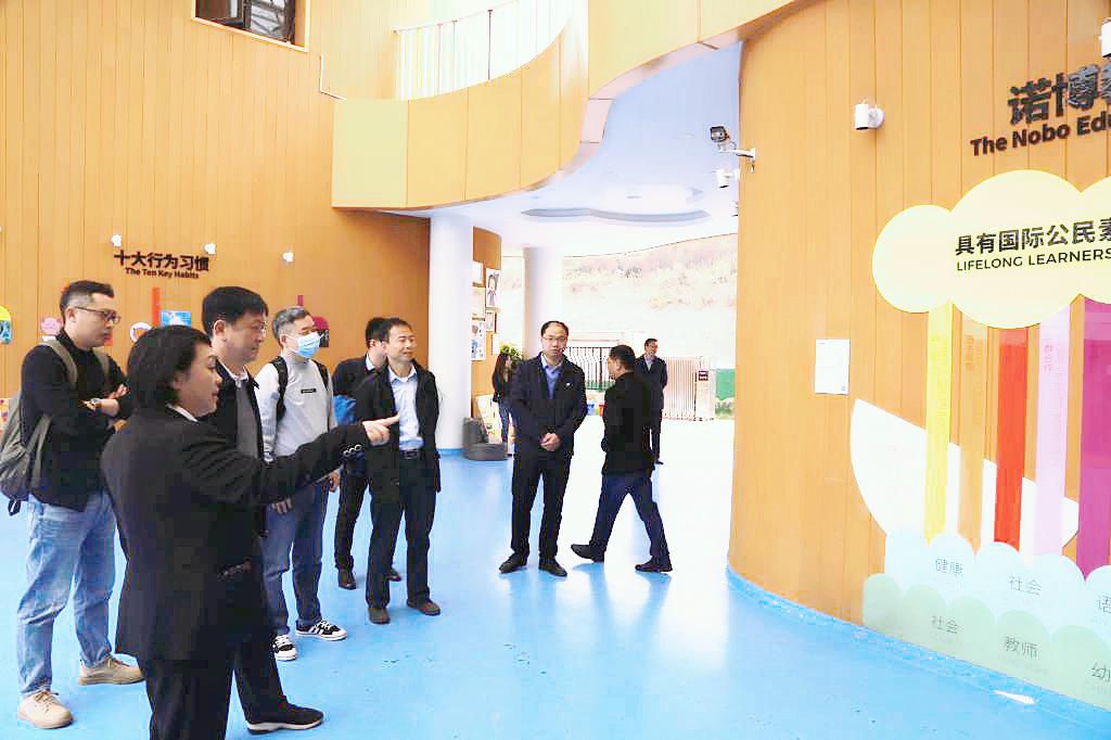 会前,泸州职业技术学院党委常委、副院长梁杰等陪同考察组一行参观了学校三期工程、教师发展中心等校区建设项目,以及经纬诺博幼儿园、洲际酒店等产教融合校企合作实训基地。