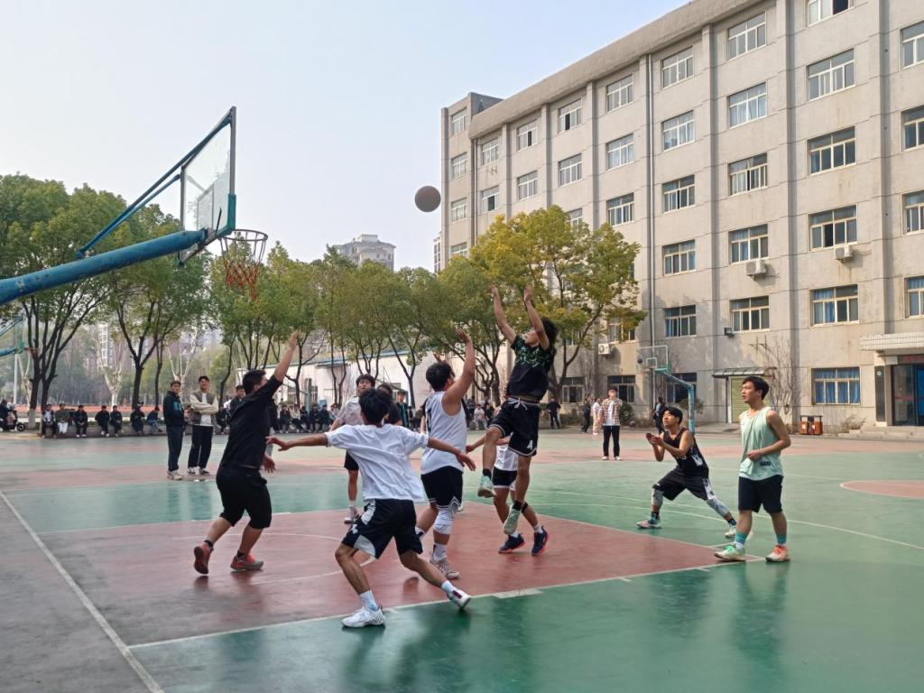 篮球赛在南湖校区歌唱社、舞蹈协会暖场表演后正式拉开帷幕。当天比赛的场次安排为:22大数据1班VS 22模具1班、22机电一体化4班VS 22计算机3班、22计算机5班VS 22新能源1班。比赛进程中,各位队员都全力以赴,积极拼抢,努力防守,显示了他们极佳的心理素质。在场的各班拉拉队们也是情绪高涨,摇旗呐喊,不时为队员打气、喝彩。经过激烈的角逐,最终22模具1班、22机电一体化4班、22新能源1班取得了比赛的胜利。