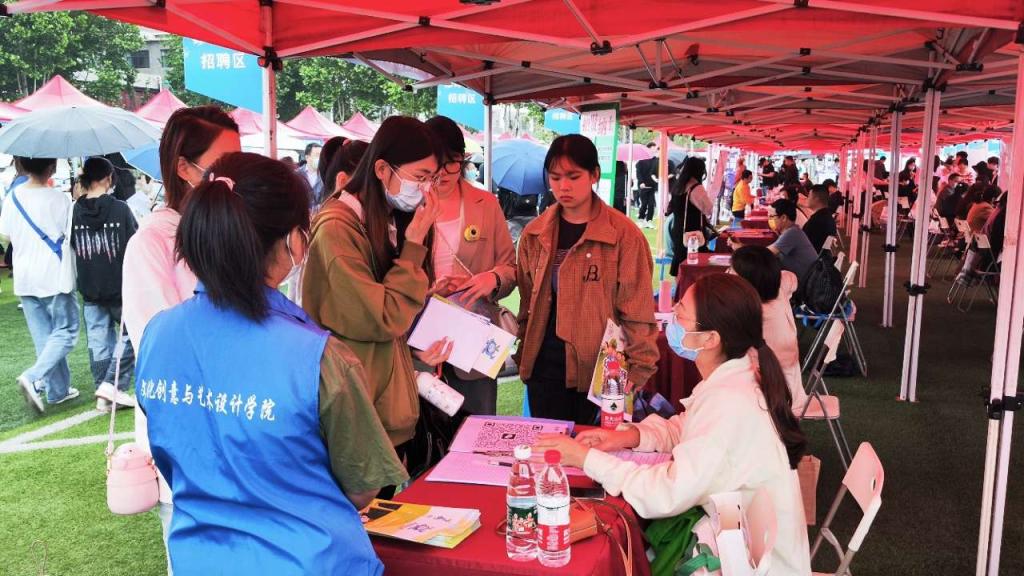 武汉市洪山经济开发区、上海市学生事务中心、上海市松江区人力资源和社会保障局、杭州市就业管理服务中心和深圳市龙华区人力资源局,带队四个地方组团招聘。